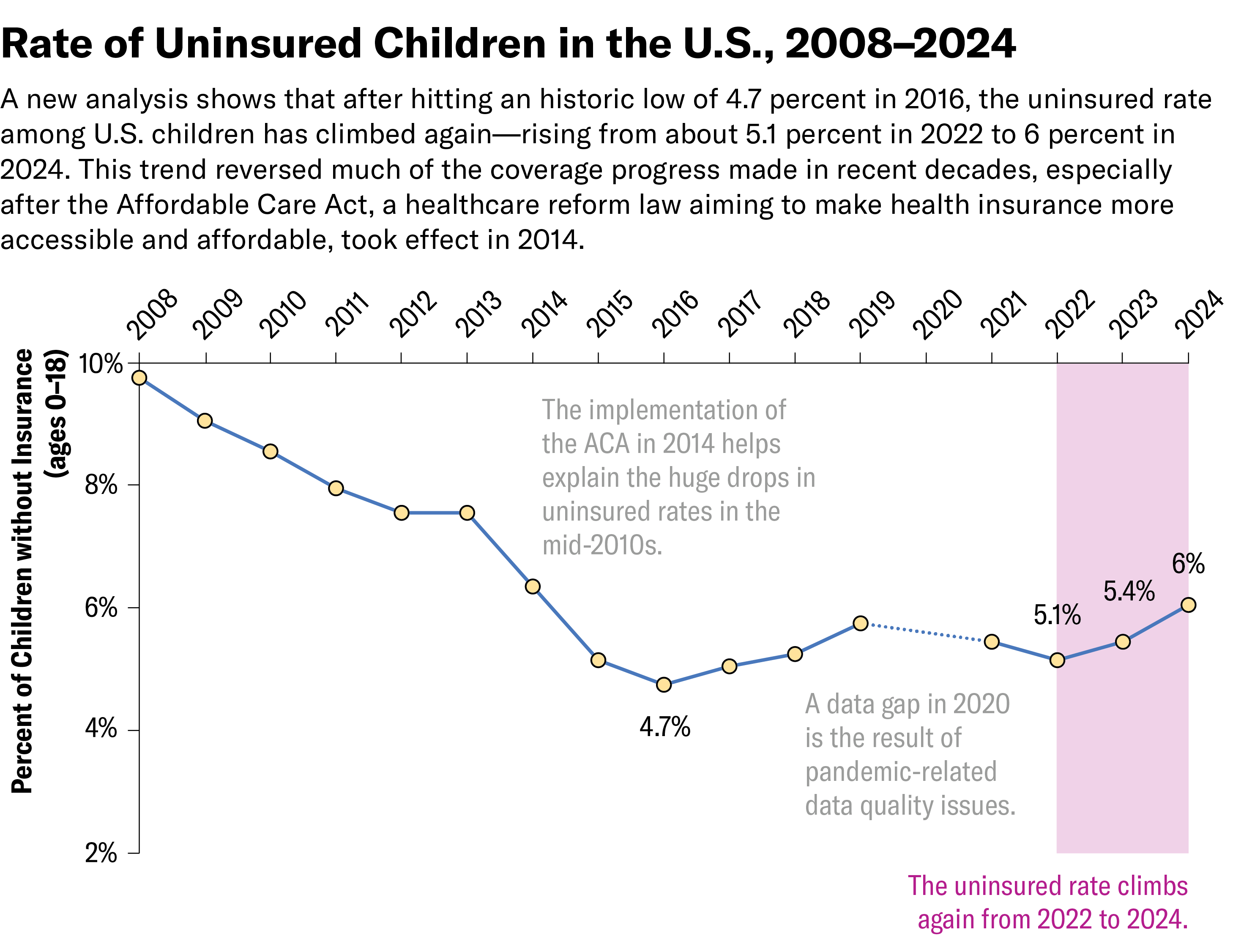 The story looks at new analyses showing U.S. children have been losing health insurance since 2022, reversing years of coverage gains after the Affordable Care Act. Joan Alker explains how the rollback of pandemic-era protections and mounting Medicaid hurdles have fueled the decline—and why its impact is especially dangerous for children with serious illnesses such as pediatric cancers. I interviewed cancer epidemiologist Kim Johnson and health economist Derek Brown of Washington University in St. Louis, whose research shows uninsured children were more likely to be diagnosed at later cancer stages and to die within five years than those with private insurance, highlighting how coverage gaps can delay diagnosis and disrupt treatment.
