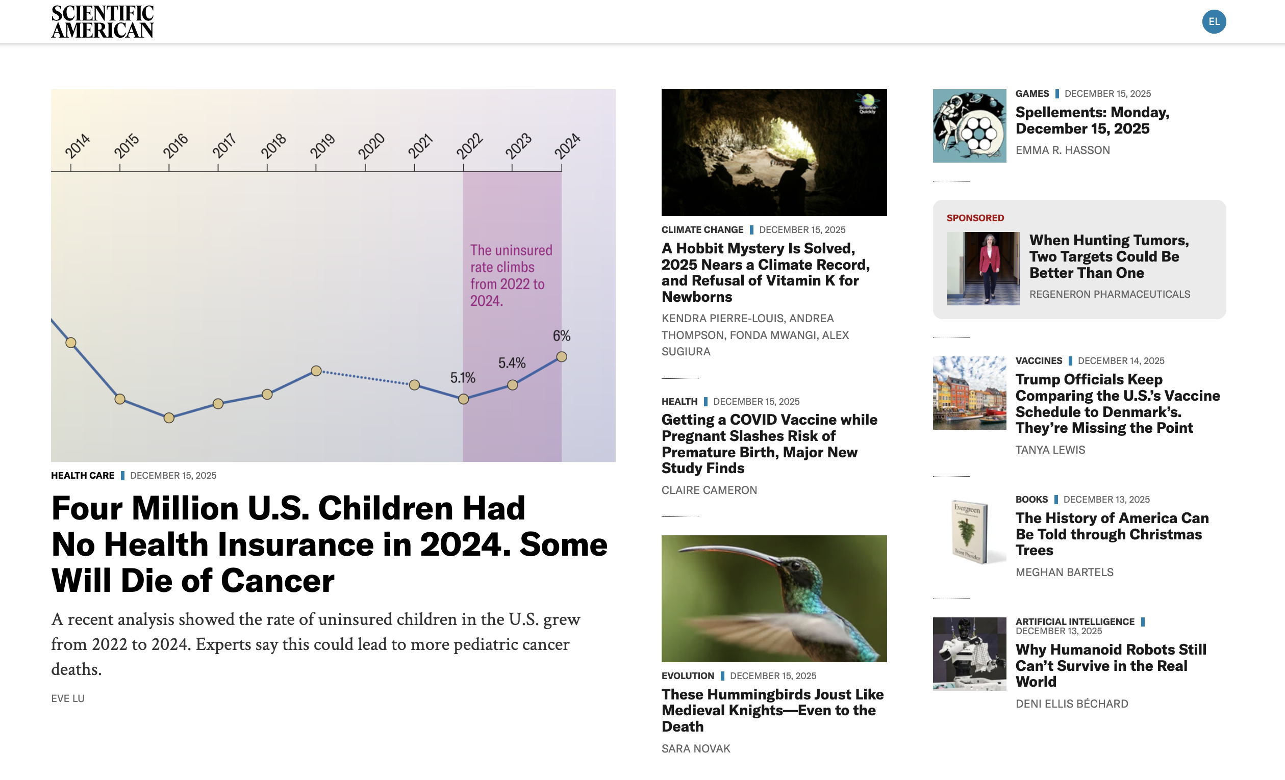 My solo byline for a Scientific American story How Rising Rates of Uninsured Children Will Increase Pediatric Cancer Deaths, edited by Tanya Lewis (text) and Amanda Montañez (graphics), is now live online.